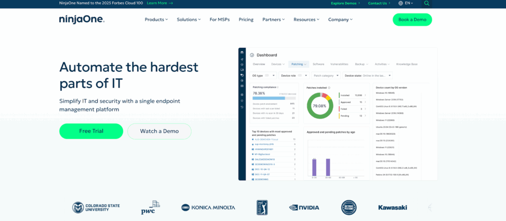 Monthly billing instead of annual commitments. Patching handles OS and third-party apps from one screen.