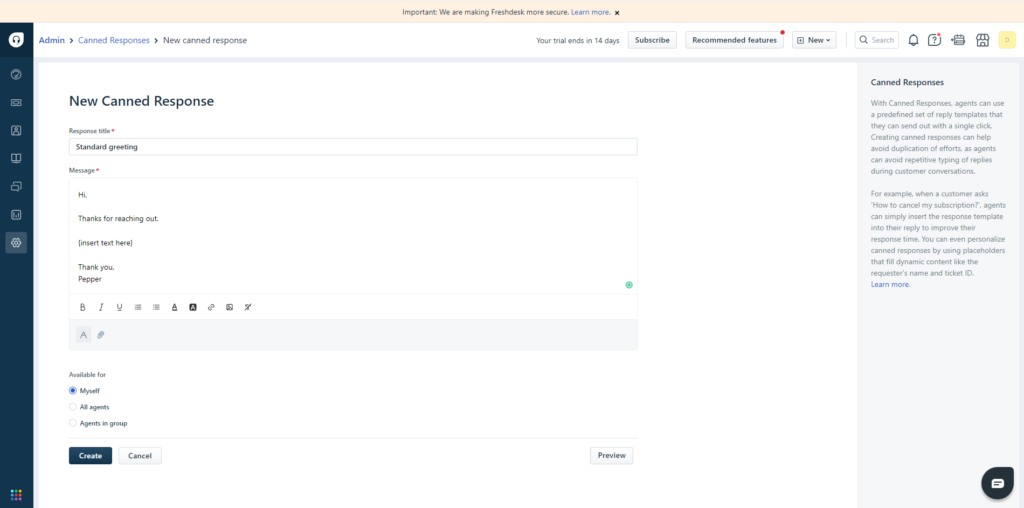 Templates standardize responses and reduce repetitive writing. Workflow automation guides users through repeatable scenarios, such as onboarding new users or handling recurring issue types.
