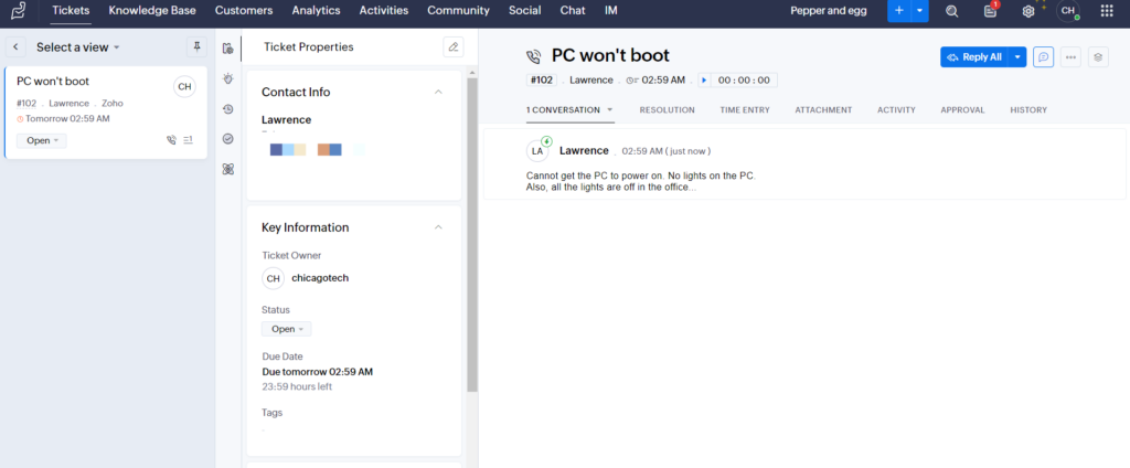 Overview: Zoho Desk is a cloud-based help desk platform focused on usability and fast deployment. For IT departments, Zoho Desk provides ticketing, SLA management, automation, and reporting features that can support everyday service desk operations without extensive configuration.