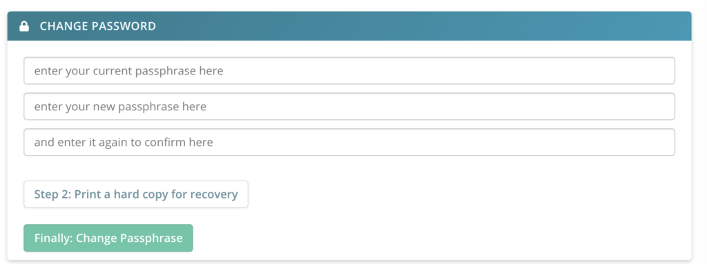 Now, if you need to change your passphrase for whatever reason, you can simply follow the instructions below and all of your data will remain preserved (and protected) even after updating.