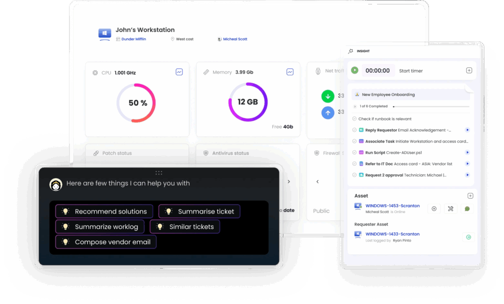 SuperOps combines ticketing, documentation, client management, and remote monitoring in a single interface. Their automation engine handles routine tasks like ticket creation from monitoring alerts, patch deployment schedules, and client onboarding workflows. The card-based interface displays information in digestible chunks, and built-in templates help new users get started without building complex workflows from scratch.