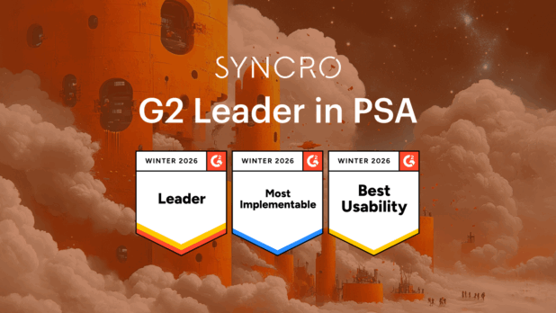 Syncro earned multiple Winter 2026 badges for PSA, highlighting consistent strength across usability, results, implementation, and ROI.
