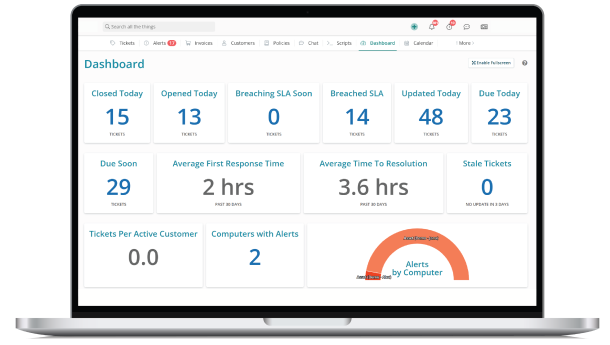 With Syncro, complex tasks become simple, and routine processes can run on autopilot. Gain control, minimize downtime, and keep your team moving forward, with everything you need for service delivery and proactive management in one powerful tool.
