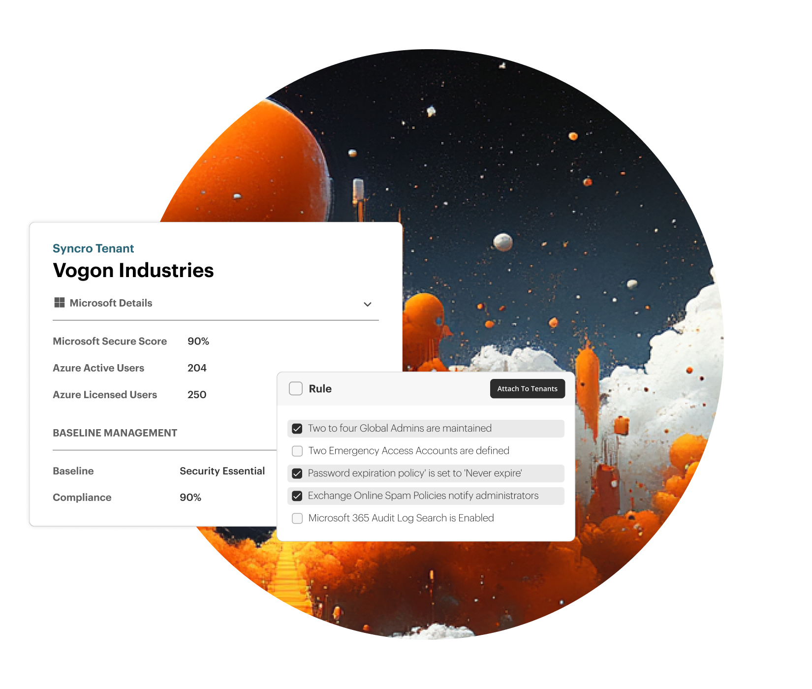 Gain a 360-degree view of your organization’s cloud security health. Syncro bridges the gap between endpoint management and cloud identity, ensuring your security assessments lead directly to rapid remediation.