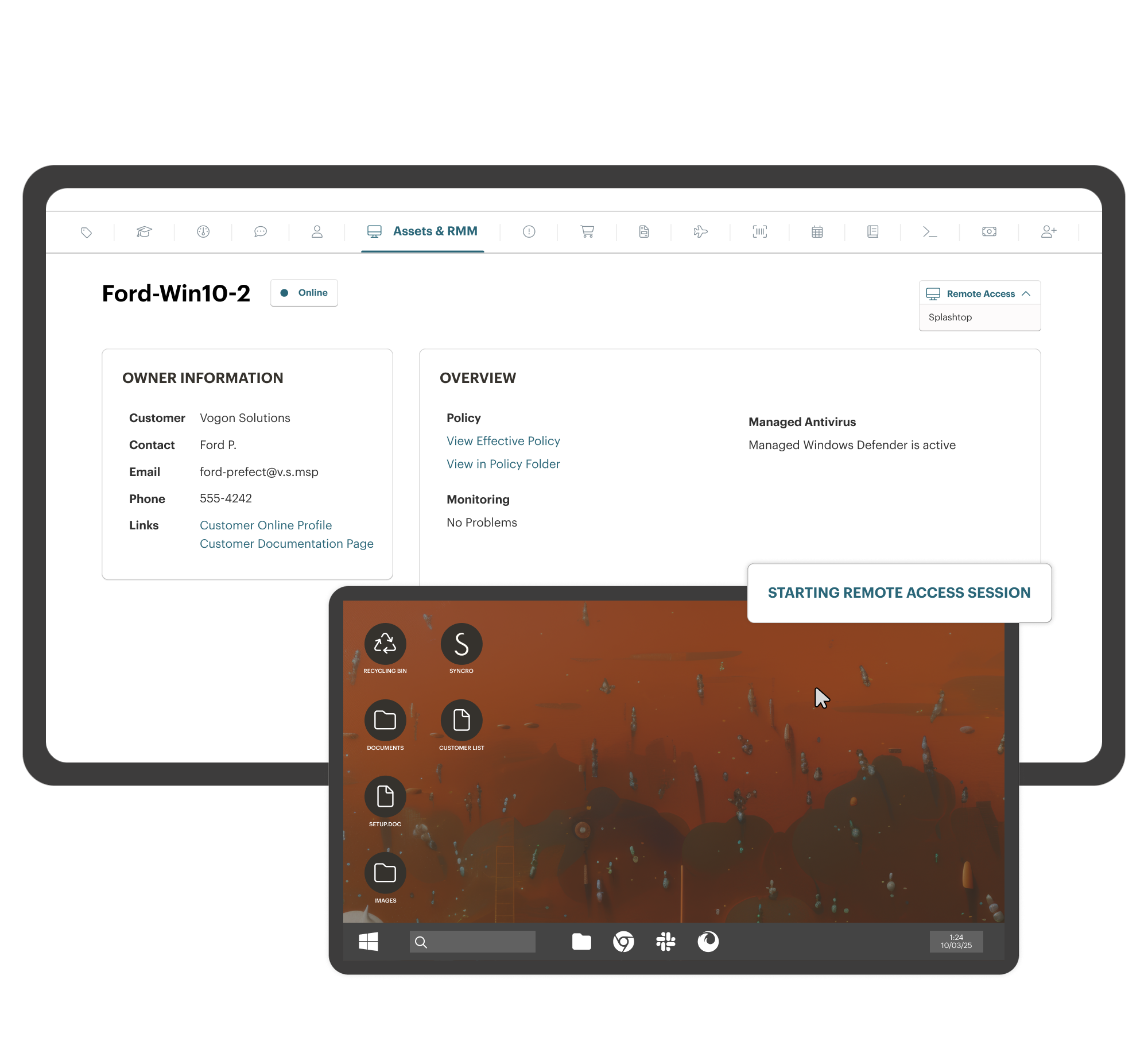 Access Windows and Mac endpoints instantly using Splashtop, included with your subscription at no extra cost.