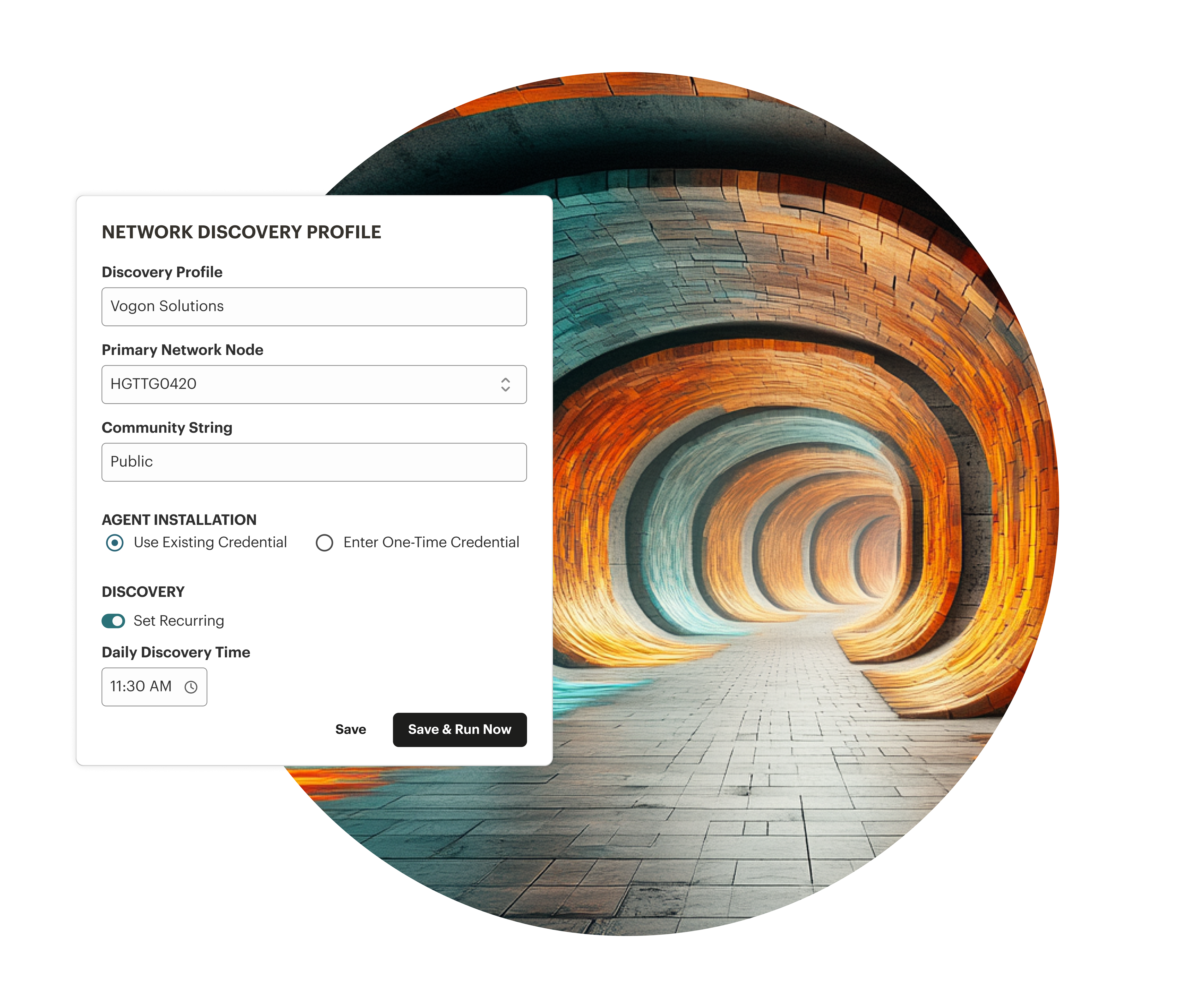 Create a discovery profile, run and schedule network scans, receive real-time notifications, and view all discovered devices in an organized list that automatically refreshes.